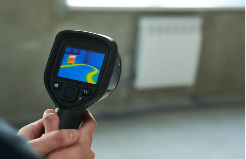 Infrared – or thermal photography – identifies differences in temperature as a surface heats or cools, to measure the presence of moisture in exposed surfaces.